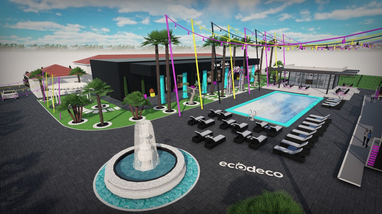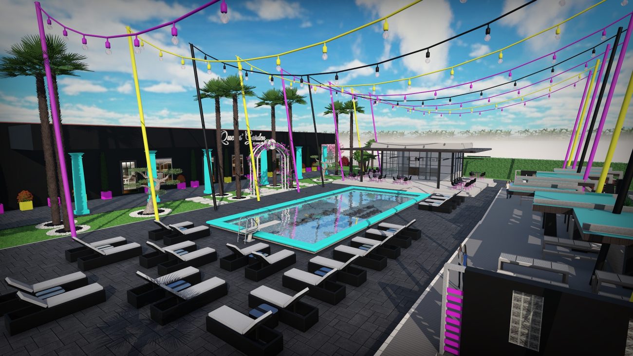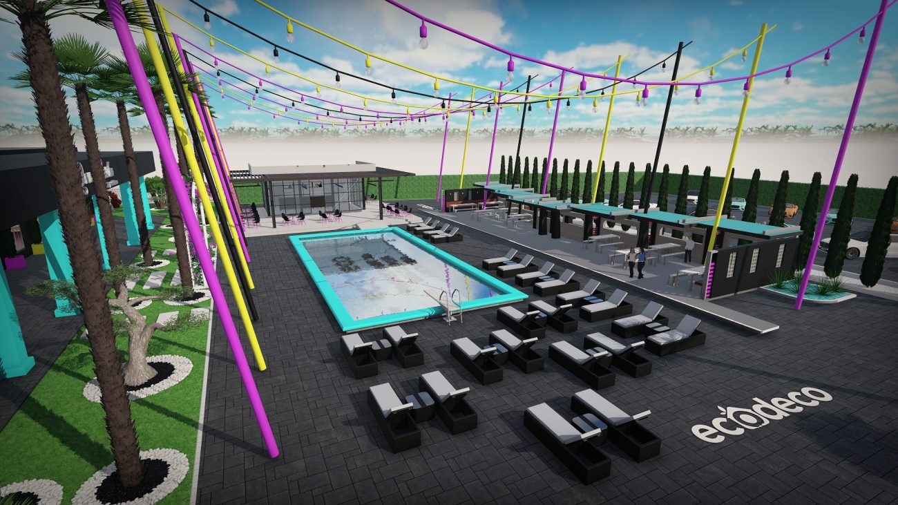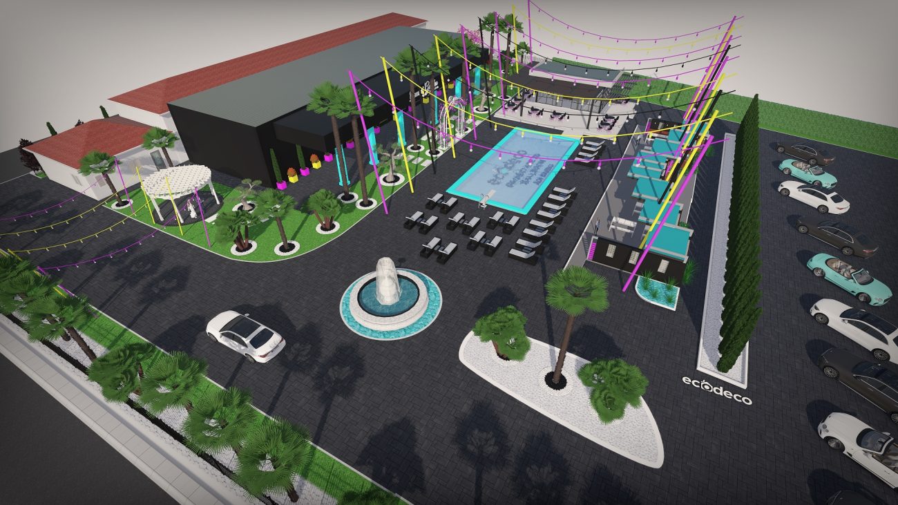 Dintr-un punct pe hartă, am transformat întregul spațiu într-un design 3D complet, cu palmieri, iluminat, texturi exacte și structură vizuală premium.